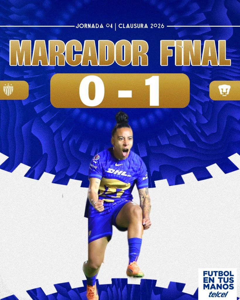 En la Jornada cuatro del Clausura 2026 de la Liga Mx Femenil, Necaxa sucumbió 0-1 ante Pumas en el estadio Victoria. En la primera mitad, el equipo de Pumas dirigidas por Roberto Medina, tuvo la oportunidad de ir adelante en el marcador, al marcarse un penal a su favor, pero falló en el disparo al ser detenido por la guardameta local.