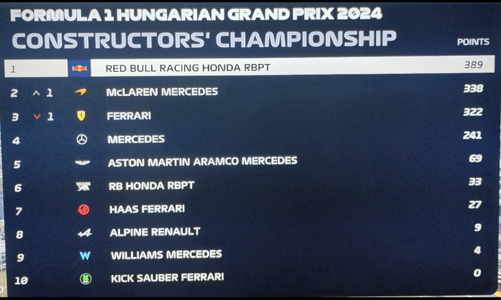 El campeonato de constructores se cierra entre Red Bull y McLaren.