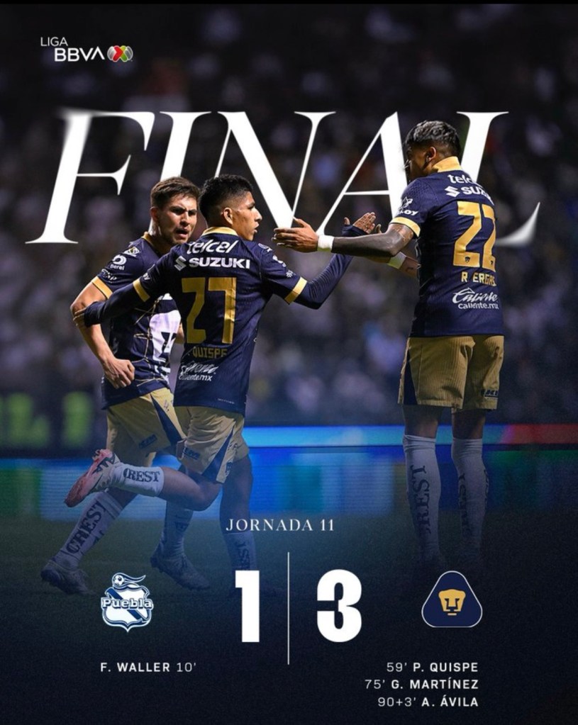 Pumas remontó 3-1 ante Puebla en el Estadio Cuauhtémoc y cortó la racha de cuatro derrotas consecutivas, en el debut de Efraín Juárez en la Liga Mx.