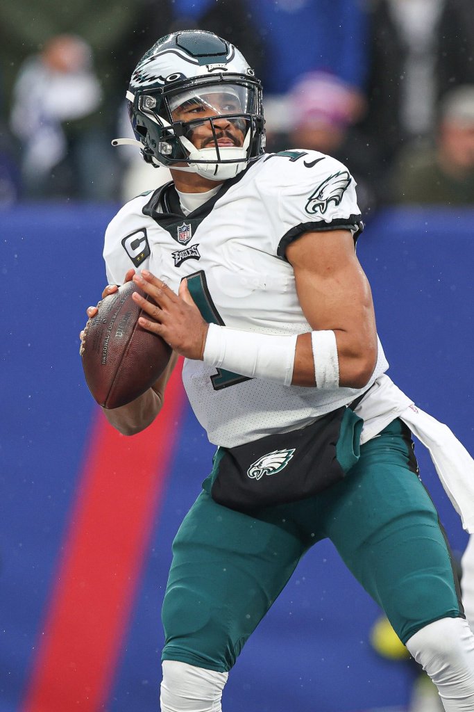 El quarterback de Filadelfia, Jalen Hurts, registró tres touchdowns (dos de pase, uno terrestre) con un índice de 132.3 y el corredor Saquon Barkley totalizó 199 yardas de scrimmage (159 terrestres, 40 recibidas) y dos touchdowns (uno terrestre, uno recibido) en la victoria de los Eagles por 28-23 sobre Jacksonville.