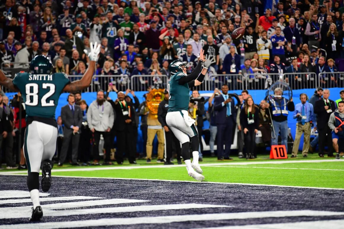 Nick Foles atrapó un pase de touchdown en el Super Bowl LII, él era el quarterback de Filadelfia y recibió el pase de su ala cerrada, a la jugada se le llamó la “Philly Special”. Foto: Ben Solomon, New York Times.