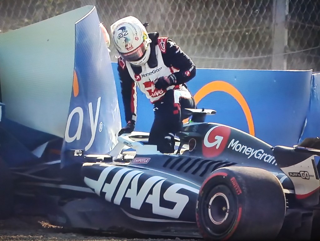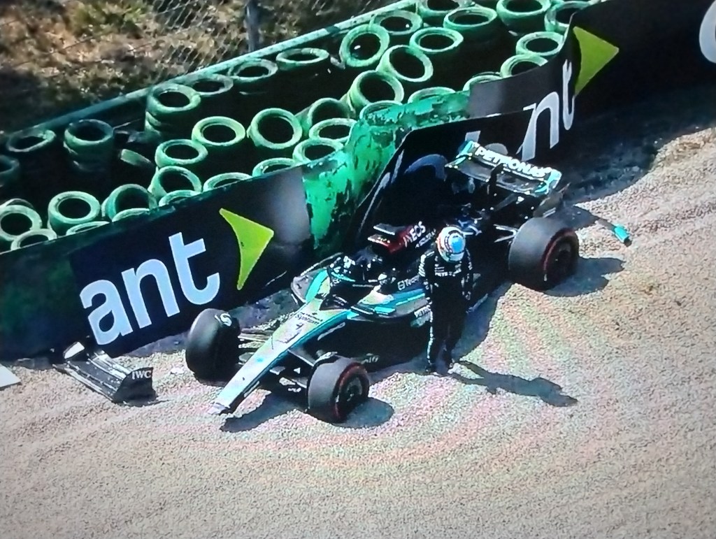 El primer piloto a los 10 minutos de iniciada la P1 se estrelló en la parabólica y estropeo el carro de George Russel, afortunadamente no pasó a mayores y el carro pudo seguir pata la P2
