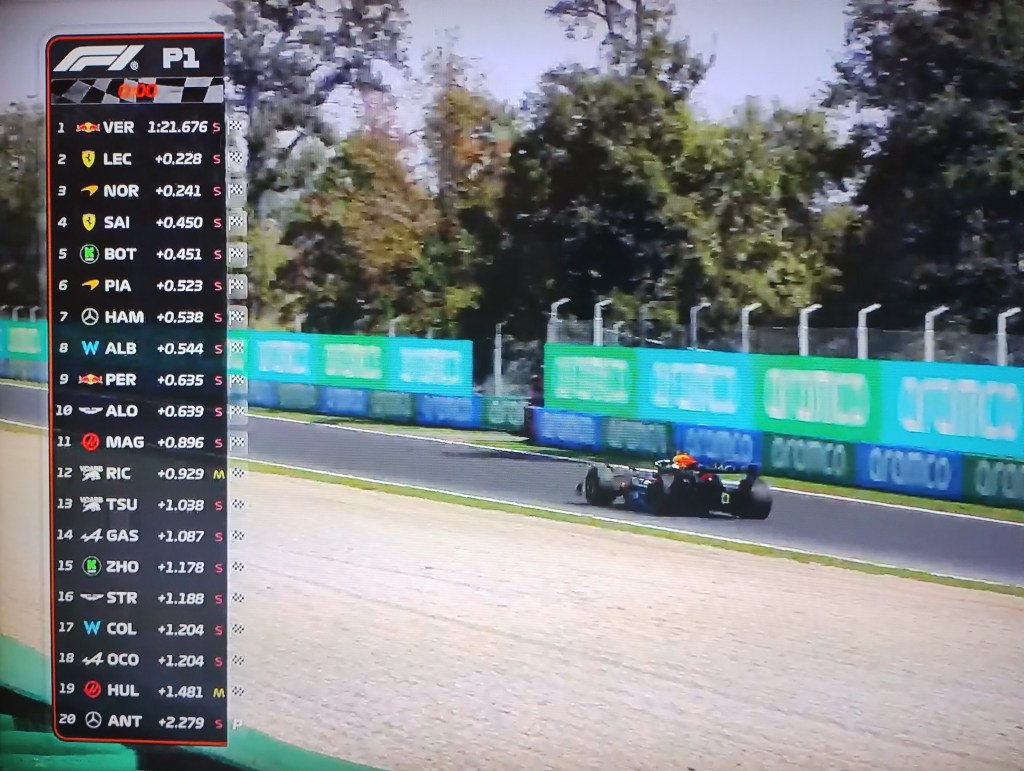 La P1 terminó con Max Verstappen de líder con un tiempo de 1:21.676