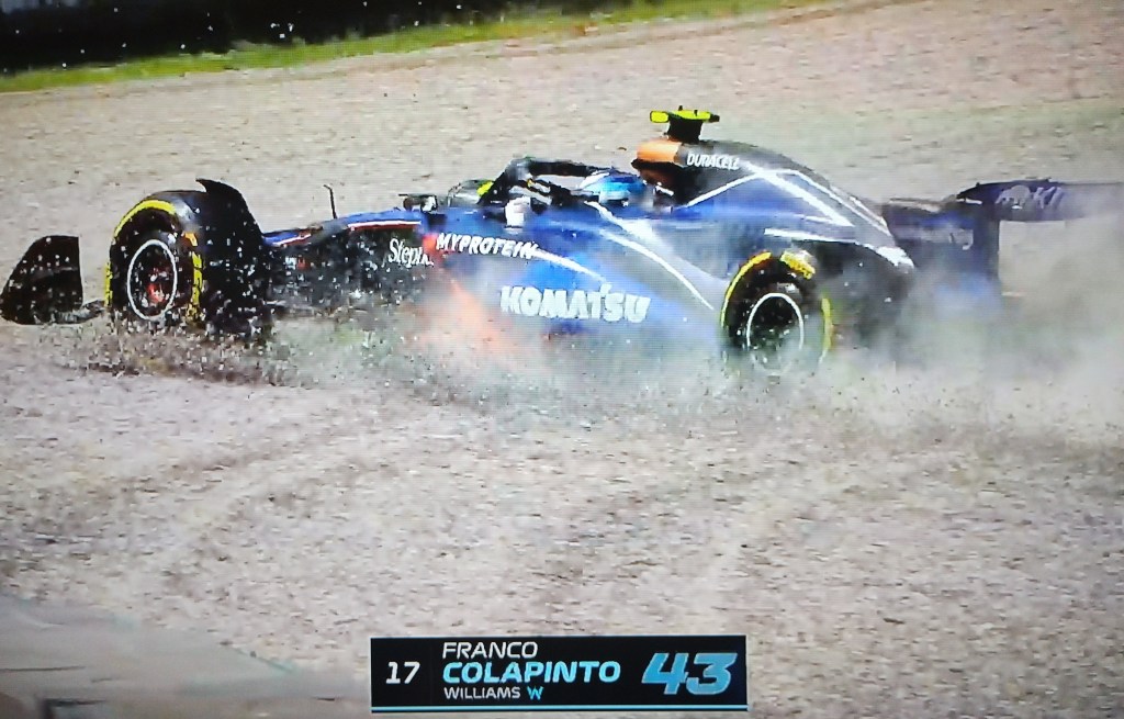 La juventud y la falta de experiencia se notó en ambos pilotos y cuando todos los seguidores de Williams estaban felices de que sería una prueba libre limpia de sus pilotos, el piloto de Pilares provincia de Buenos Aires se salió de la pista aunque él no impactó con el muro, esto paso ya para acabar la prueba.