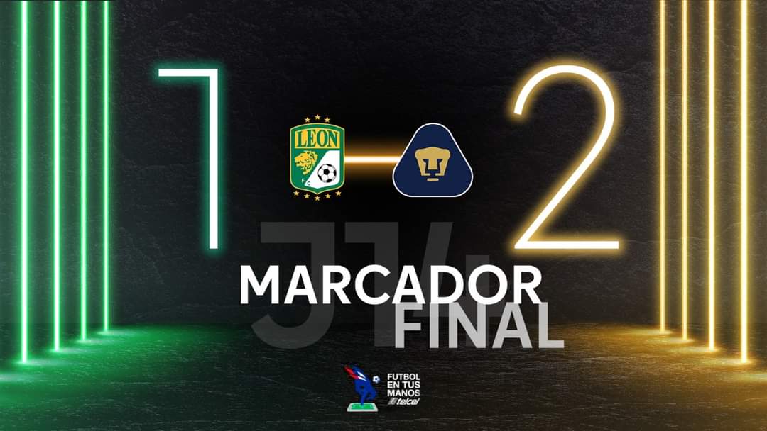 Esta noche en la ya avanzada jornada 14 los Pumas sacan una importante victoria que les da un respiro después de no tener los resultados esperados, en un partido donde hubo oportunidades de ambos lados sin embargo con un León más insistente y creando más oportunidades de gol, el primer gol del encuentro fue por parte del delantero de los Pumas Dinenno donde se encontró con un balón en el área y termino al fondo., mientras que el empate ya llegó a la segunda parte con polémica en una mano que se pedía pero al final no procedió y validaron el gol., para el gol de la victoria fue un Zurdazo que cruzó de manera perfecto el jugador universitario García. 🔥🐱🔥